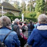 En matinée, les pèlerins ont entrepris un chemin de prière, ponctué de chants, de la récitation d’un chapelet et d’un déplacement vers la source du sanctuaire. Ils ont ainsi répondu à l’invitation de Marie. En effet, à Banneux et lors de ses apparitions en 1933 à la petite Mariette, Marie a promis de soulager la souffrance et elle a aussi demandé à ce que l’on prie beaucoup. Avec foi, les pèlerins du Brabant wallon ont ainsi poussé leur main dans l’eau, puisant à la source de toute consolation. Comme on se passe une bougie, les pèlerins se sont aussi transmis les uns aux autres un bâton de pèlerin.