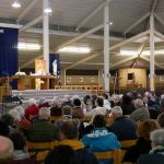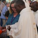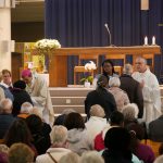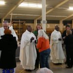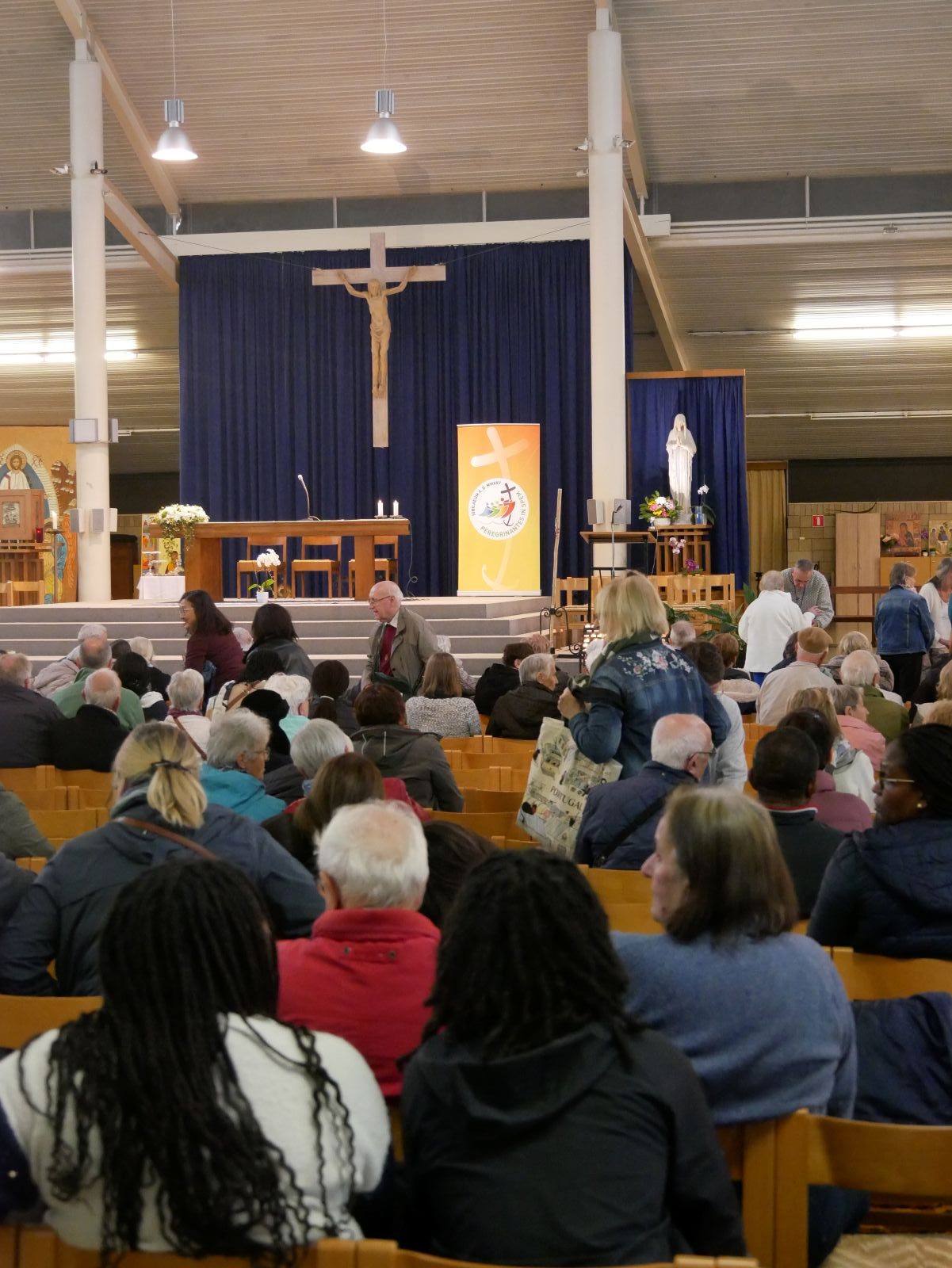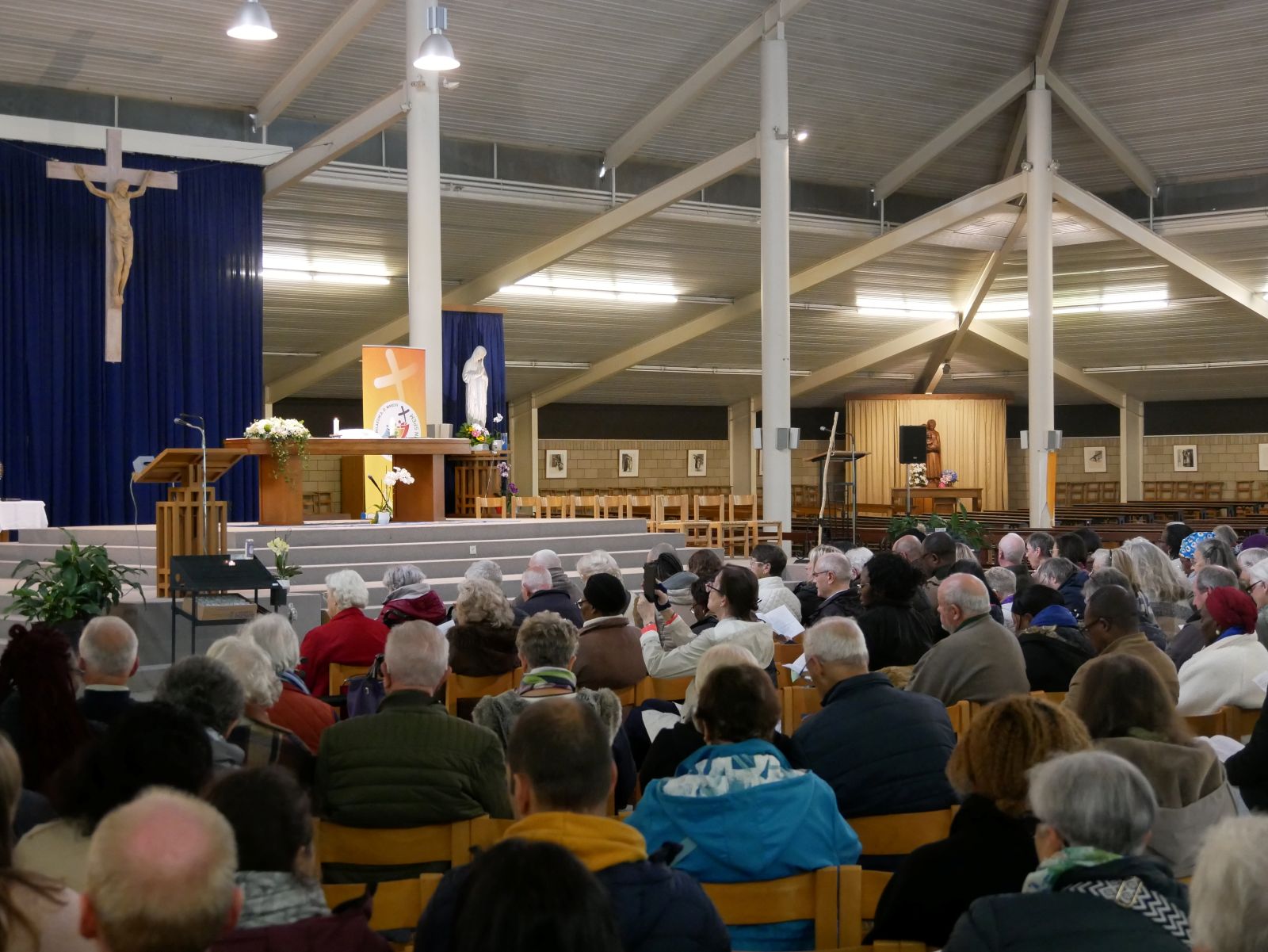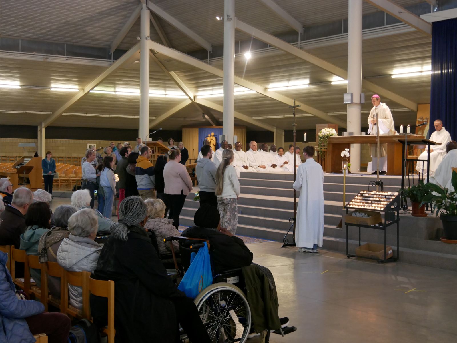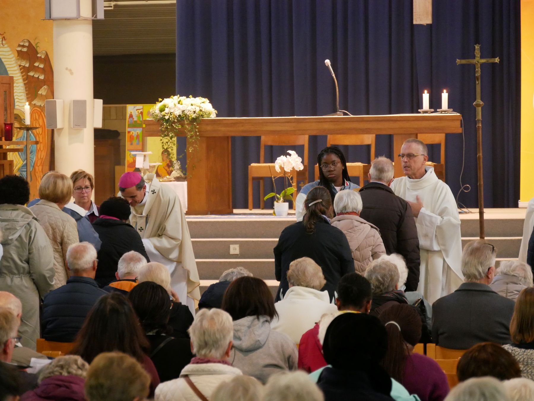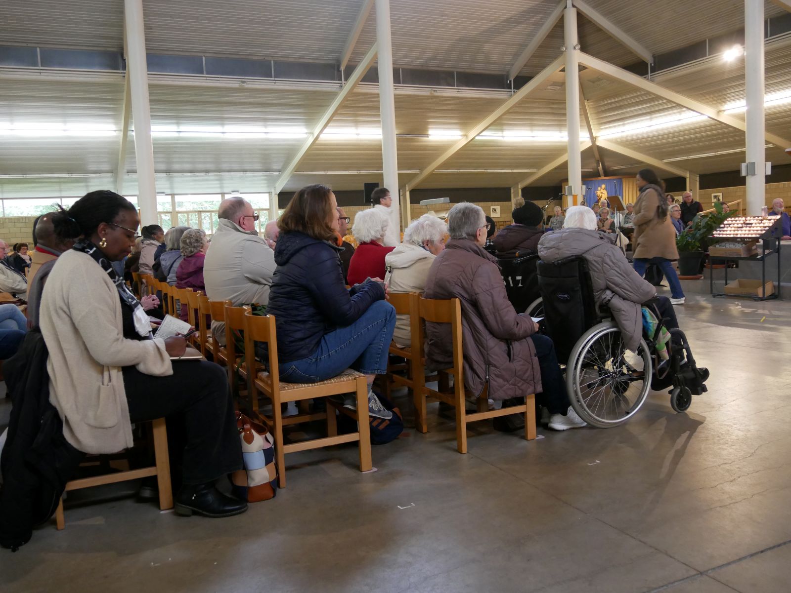 Point d’orgue de la journée, la messe, présidée par Mgr Terlinden, suivie du Sacrement des Malades. Lors de son homélie, centrée sur un extrait du livre de Zacharie, il a rappelé que le Seigneur a accompli ses promesses en Marie et qu’Il veut nous accorder le don de l’espérance et de la joie. Cette joie que Dieu apporte, elle jaillit de la croix et de la résurrection du Christ. « Chers amis, quelle que soit notre histoire, nos joies et nos peines, accueillons nous aussi cette parole du livre de Zacharie : ‘chante et réjouis toi fille de Sion. Voici que je viens. J’habiterais au milieu de toi’ « .
