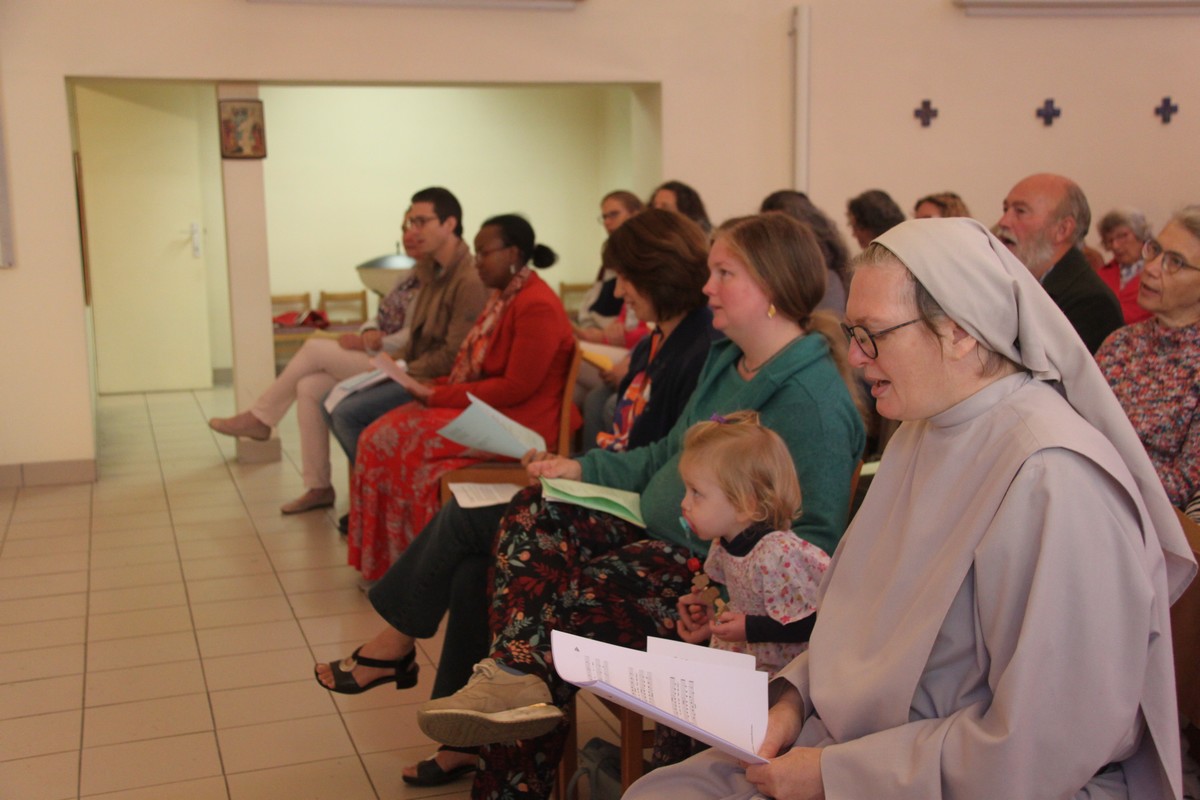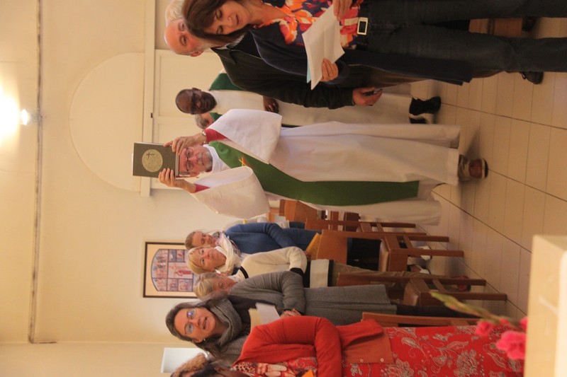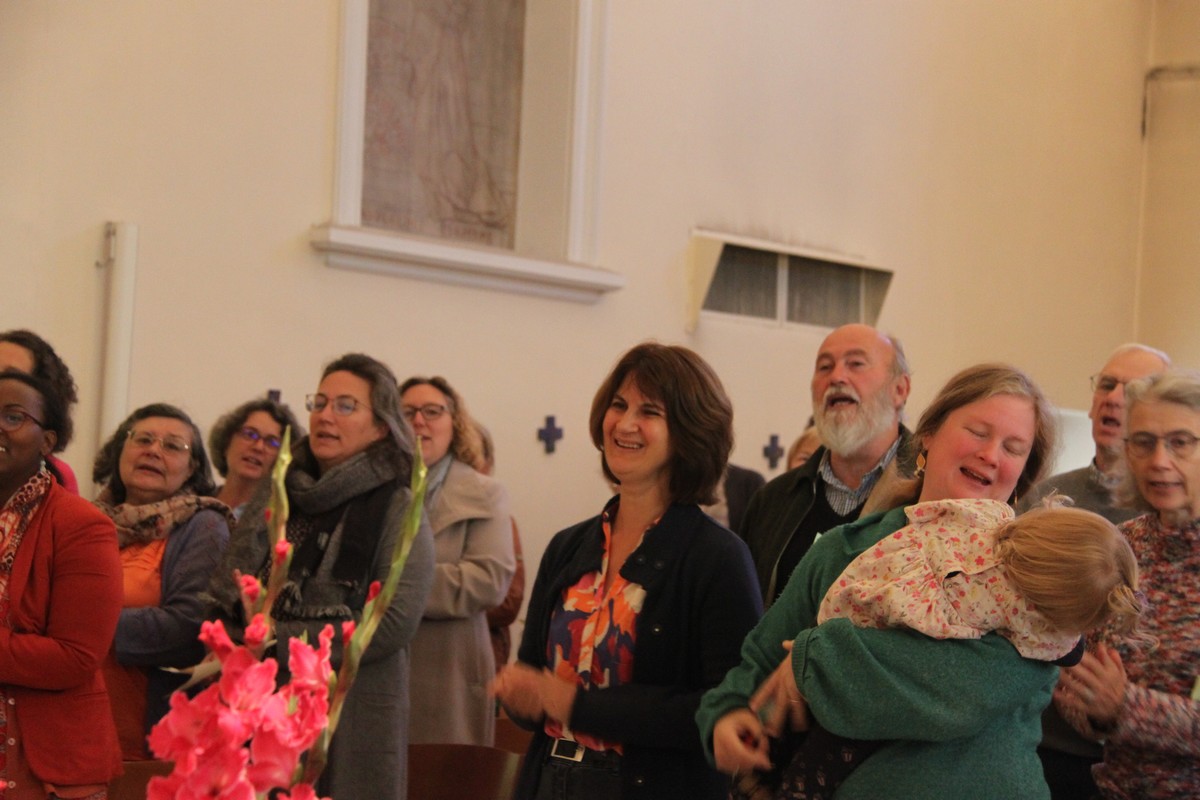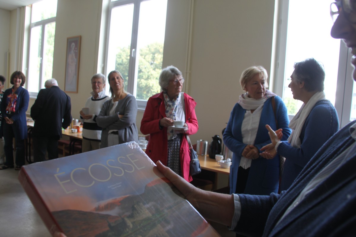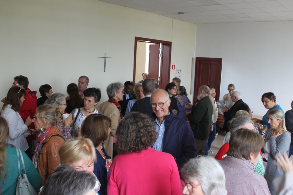 Et encore quelques photos du « café de l’amitié » qui a réuni tous les participants, y compris Alice, la fille de Gabrielle, mascotte de notre assemblée 😉 ; Mgr Hudsyn a profité de ce moment pour remercier Sophie Janssens, qui quitte sa fonction au Service pastoral « Couples et Familles » pour d’autres horizons, en lui offrant un livre d’art sur l’Écosse.