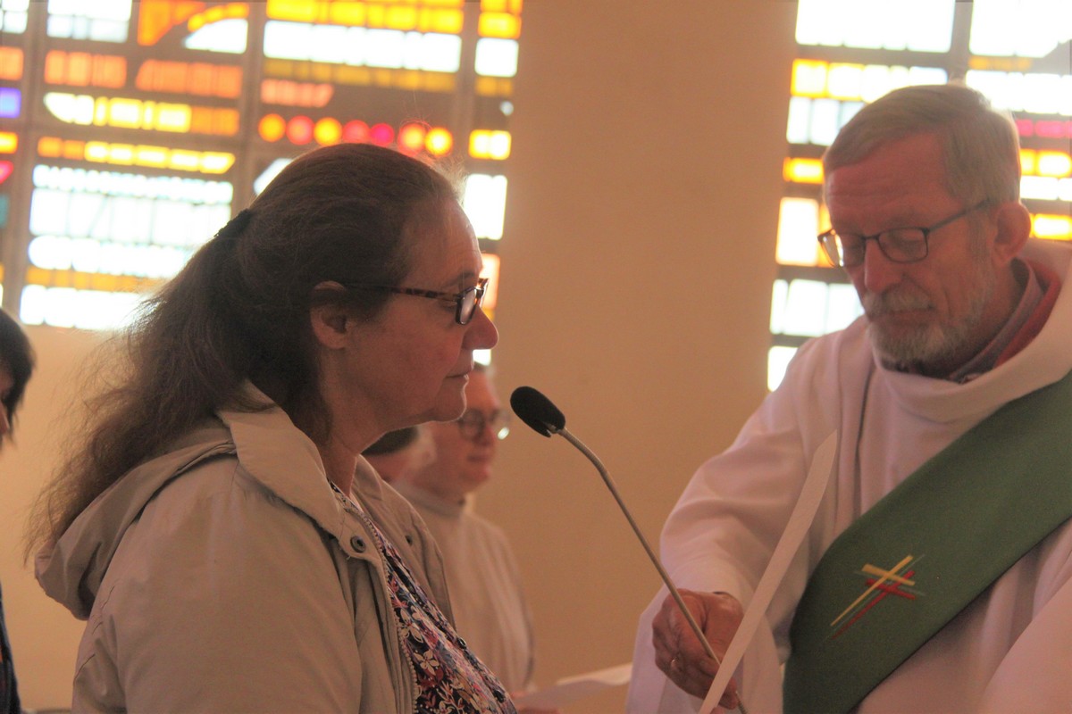 En accueillant chacun leur mission, Sr Marie-David, Valérie, Gabrielle, Sandra, Françoise et David (dans l’ordre de la photo) ont présenté un texte biblique et une prière qui les accompagneront dans leur travail quotidien.