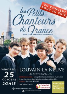 Globe Trotteurs à la voix d’or, les Petits Chanteurs de France vous invitent à venir les écouter en concert. Dans ce monde en plein tourment, ils viennent chanter chez vous et pour vous ! A l’Eglise Saint-François de Louvain-la-Neuve, le 25 octobre dès 20h15.