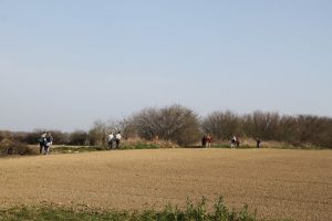 Très gentiment accueillis par les paroissiens qui leur servent café et biscuits, puis lancés par un chant, la lecture de l’évangile du « jeune homme riche », les consignes et un caillou en poche, ils partent en binôme sur les chemins vers Haut-Ittre, par un soleil éclatant et qui chauffe déjà bien !
