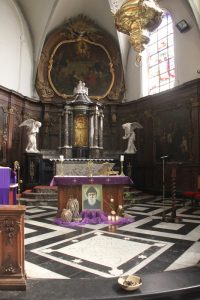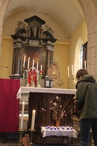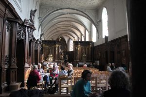 Première étape : l’église Saint-Laurent de Haut-Ittre, où le Saint-Sacrement est exposé, et devant lequel ceux qui le souhaitent peuvent allumer un lumignon. C’est aussi le moment de présenter au Seigneur sa propre question et celle de son compagnon de route.