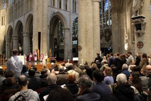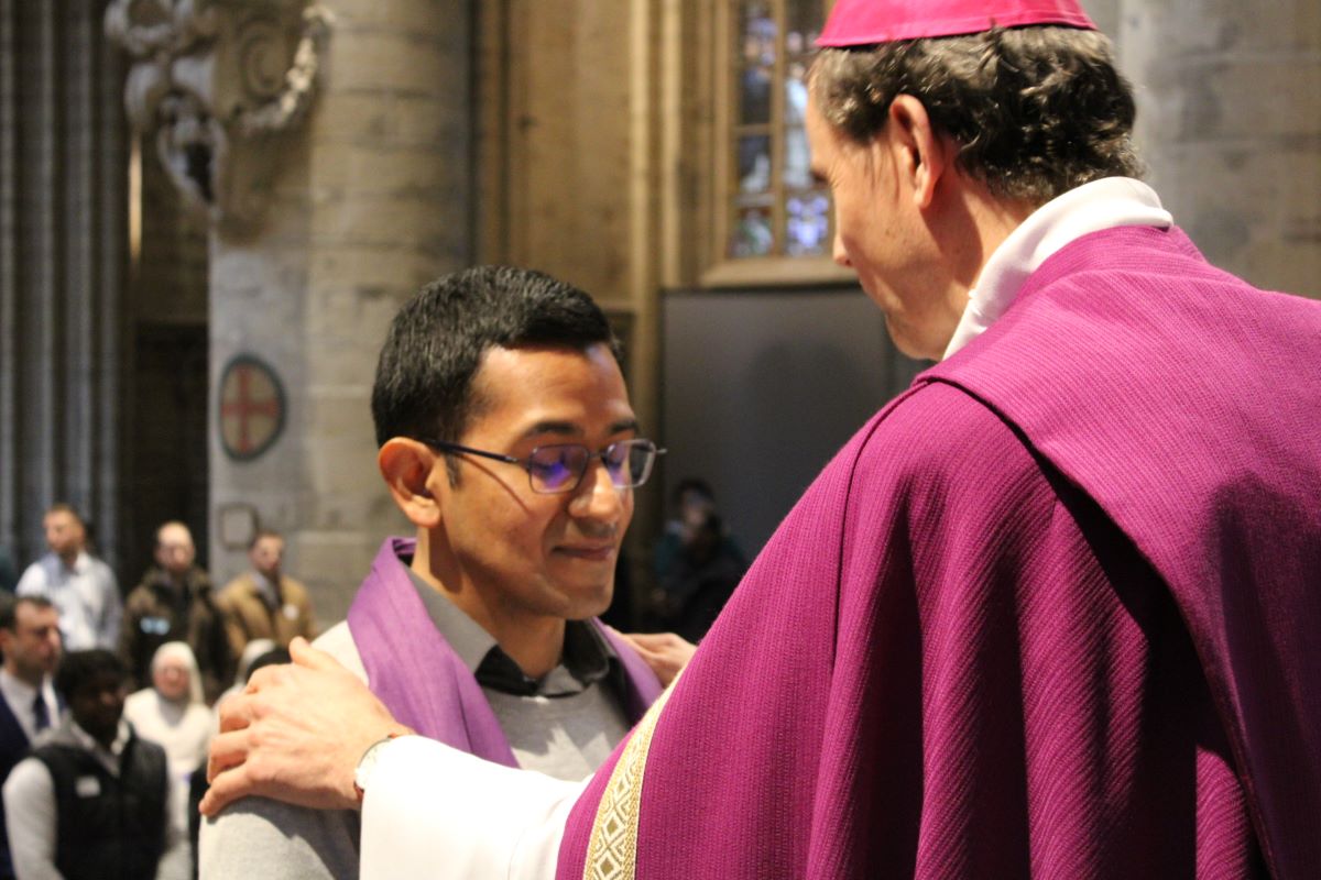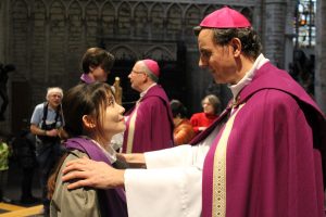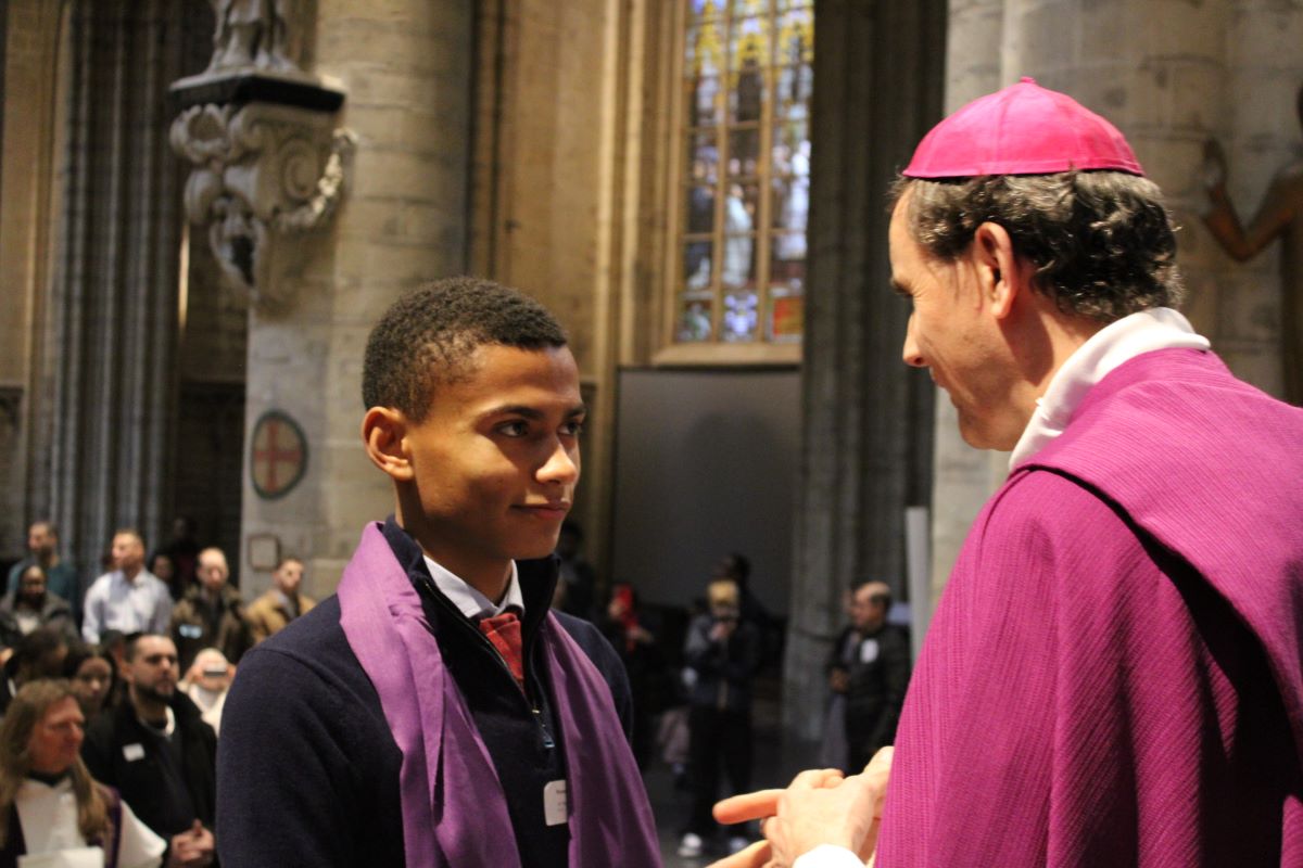 Cette année, une nouveauté s’est invitée dans la célébration de l’appel décisif. Les catéchumènes du Brabant wallon ont rejoint ceux de Bruxelles. Ils ont répondu « Me voici » à l’appel de notre archevêque Mgr Luc Terlinden. Il étaient en présence de
