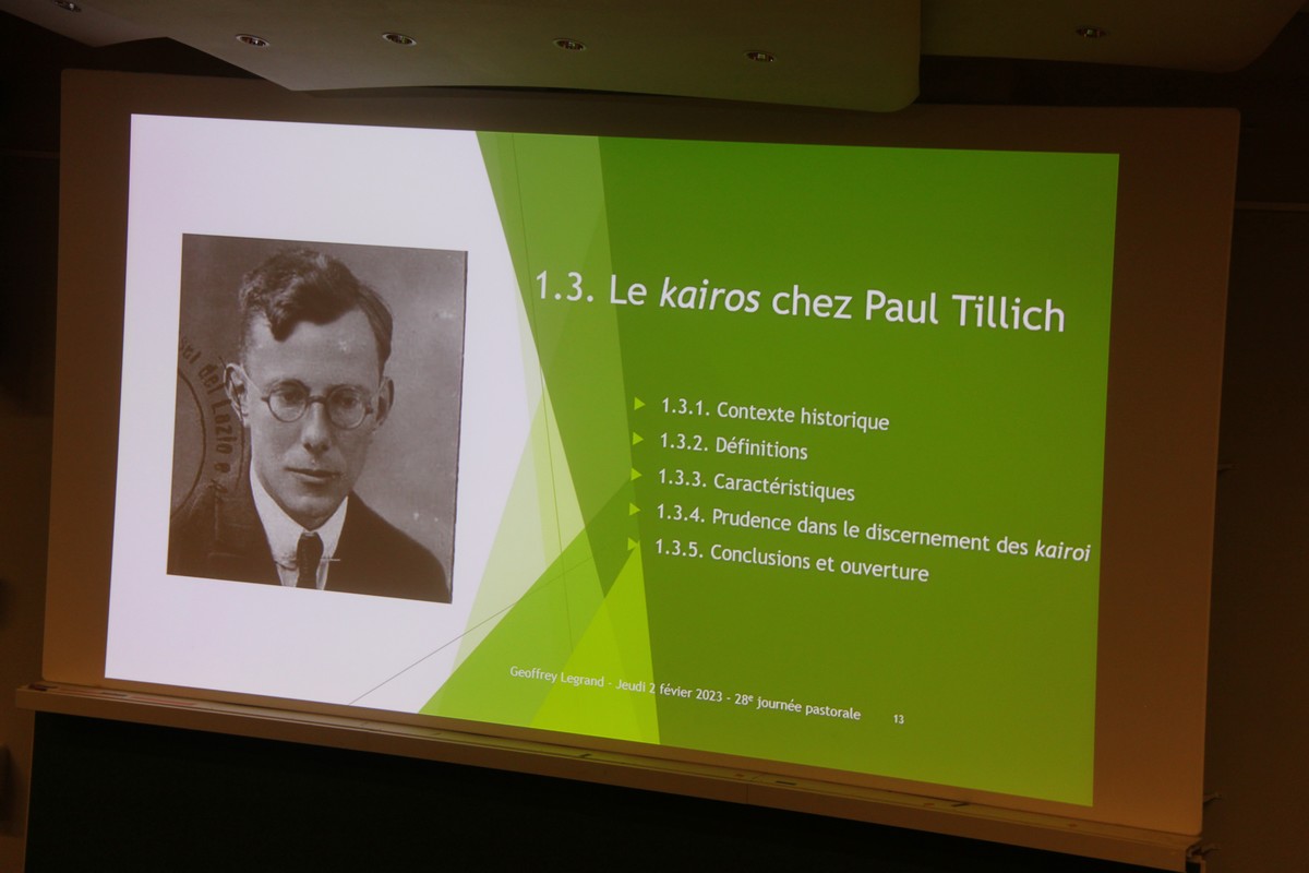 Cette attention vis-à-vis du monde, de la réalité sociale en mouvement a constitué le fil rouge de la troisième intervention de la matinée, menée par Geoffrey Legrand. Ce théologien a situé son propos dans la perspective de Paul Tillich. Pour celui-ci, le kairos, le moment favorable, est actualisable dès l’instant où le chrétien reste également attentif aux signes des temps que sont toutes les mutations de l’histoire porteuses de sens. À ce titre, la méthodologie de l’apostolat catholique, initiée par le cardinal Cardjin, est d’une grande utilité. Voir, juger et agir deviennent les instances où se forgent les bases d’un sérieux travail d’évangélisation ou de proposition de la foi.