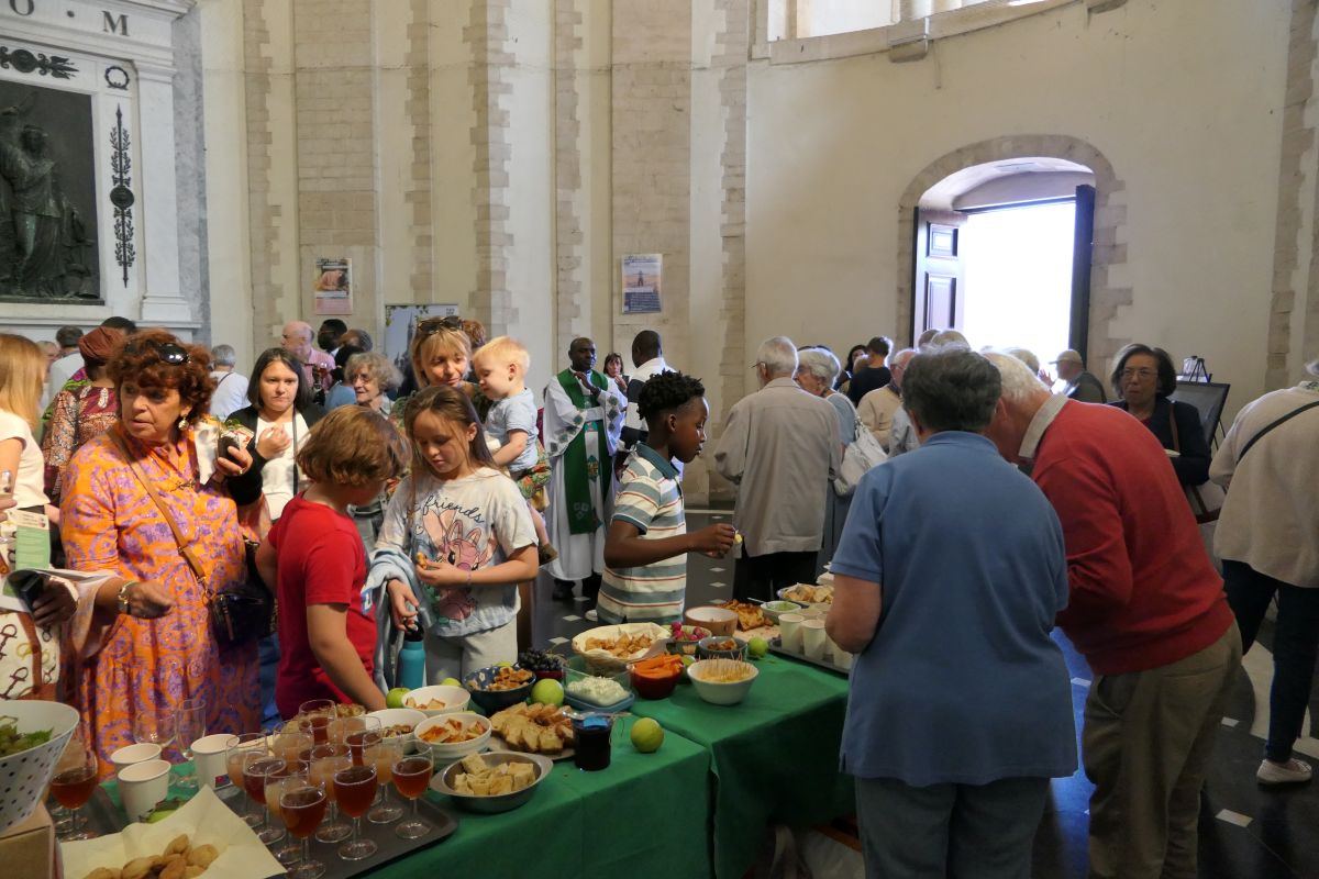 Après la messe, la communauté de Waterloo a veillé à offrir un beau moment de convivialité au terme de la célébration avec un apéro festif, généreux et diverses préparations faites maison.