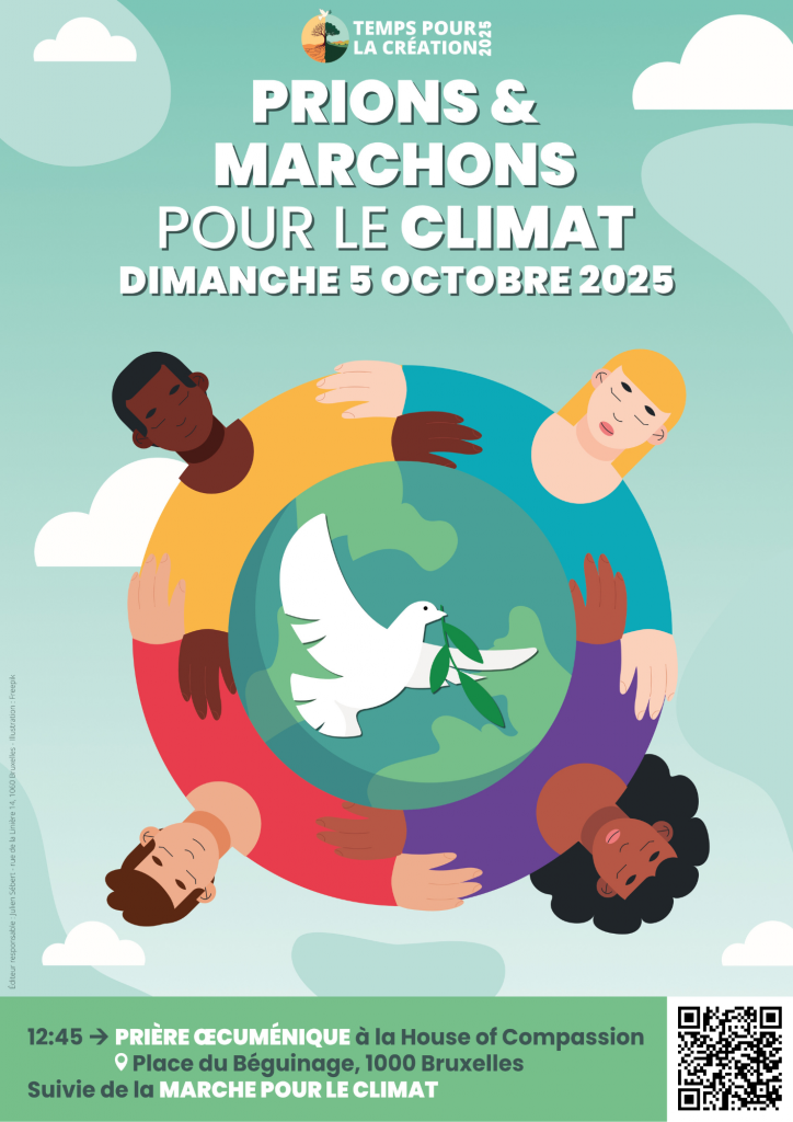 La prière du Temps pour la Création est à emporter et prier en communion avec tous les chrétiens du monde pour que soit répandu sur nous l’Esprit. Que tous ensemble, nous puissions la prier et œuvrer à un monde de Paix. Vous pouvez la télécharger ici ou vous adresser au vicariat pour la recevoir.