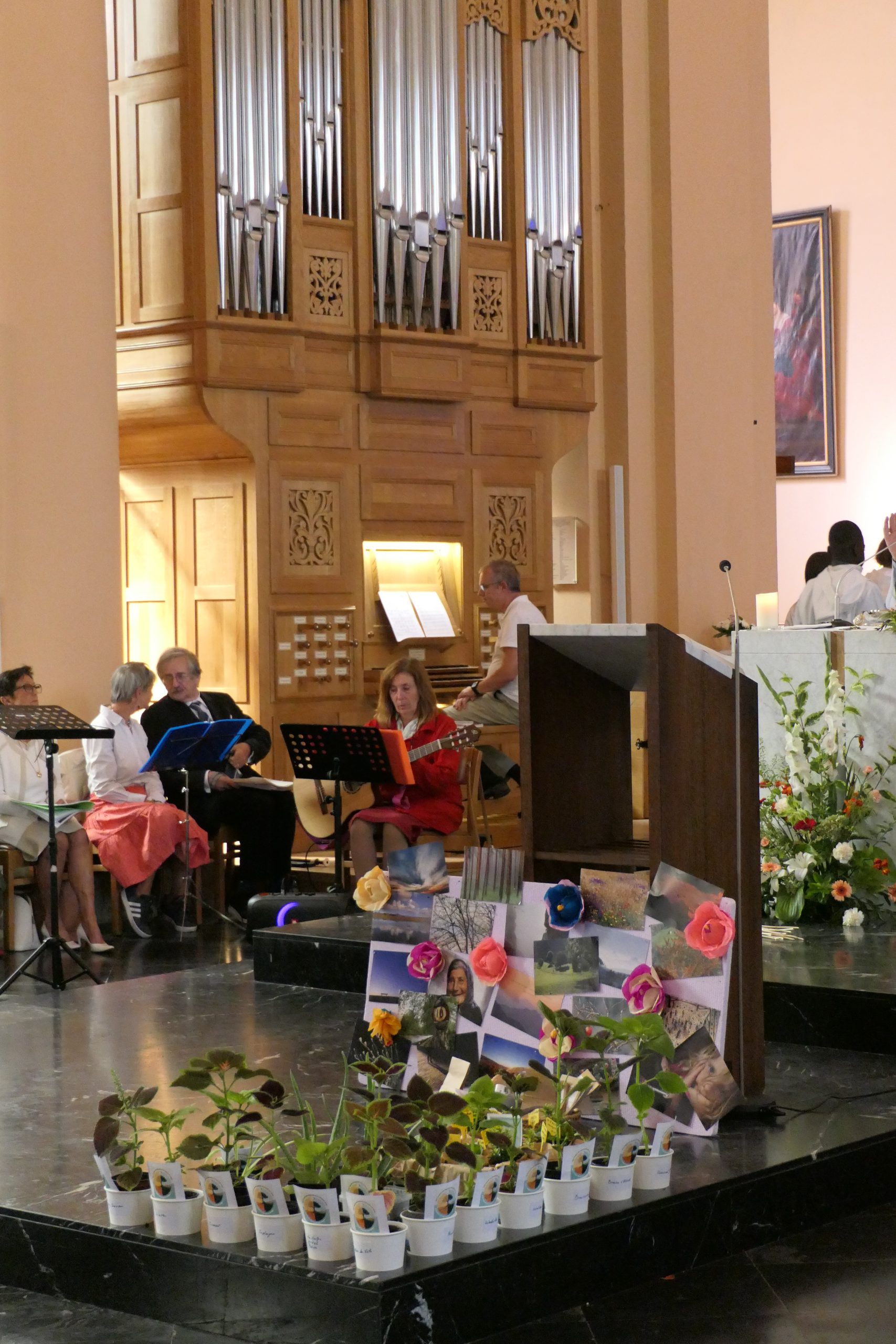 Toutes ces plantes ont formé un joli jardin devant l’autel pendant la messe. Une manière d’illustrer ce lien entre ciel et terre dont parle Laudato Si.