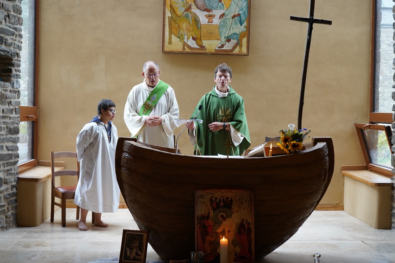 Le samedi, nous accueillons une jeune pasteure protestante, Audrey Torini, qui nous passionne par son invitation à nous mettre en marche en nous délestant. C’est plein de motivation et le sac léger que nous partons à pied depuis le village de Vonêche vers « Quartier Gallet », un lieu spirituel à un jet de pierre de Beauraing. Le Père Jean-Louis, jésuite à la sérénité contagieuse, nous accueille. Il nous présente son « domaine » et la vie qui s’y déroule. Son exposé dévoile la sobriété assumée qui y règne et l’aptitude retrouvée pour accueillir les grâces toutes simples qu’apporte chaque journée.