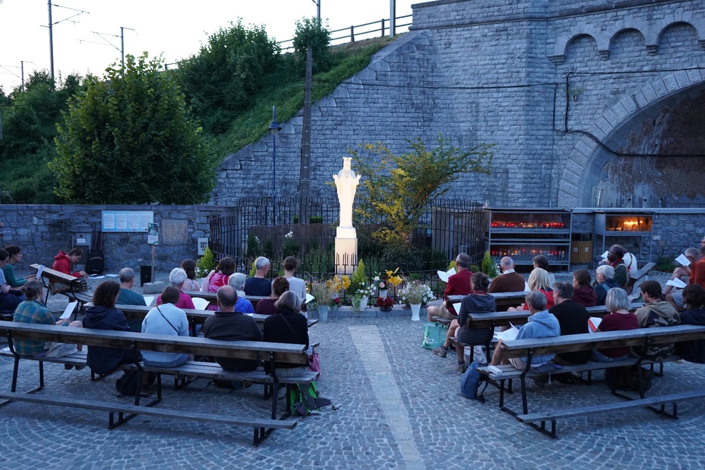 Nous quittons Quartier Gallet en soirée pour rejoindre à pied Beauraing. Nous confions à Marie nos intentions et nos rêves.