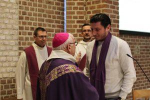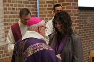L’après-midi a commencé par une rencontre avec Mgr Hudsyn au cours de laquelle ils ont évoqué des éléments marquants de leur parcours catéchuménal.