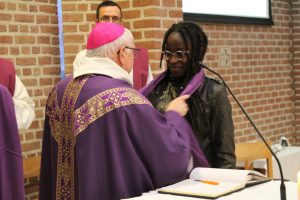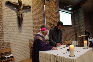 Après avoir entendu le témoignage des accompagnateurs sur leur préparation, Mgr Hudsyn a appelé chaque catéchumène au nom de l’Eglise. Chacun a répondu « Me voici » et a inscrit son nom dans le registre des futurs baptisés. Ainsi, ils ont affirmé leur désir de recevoir les trois sacrements de l’initiation chrétienne lors de la Vigile pascale prochaine.