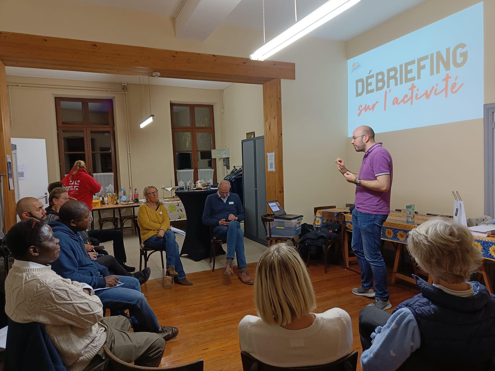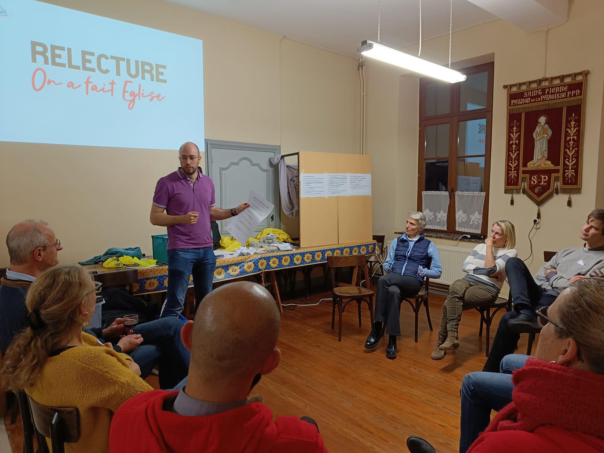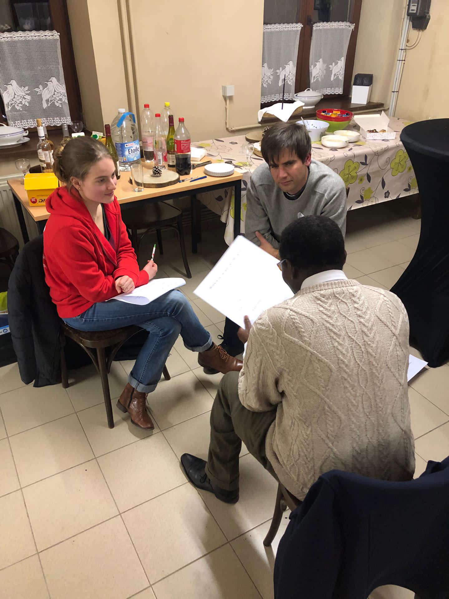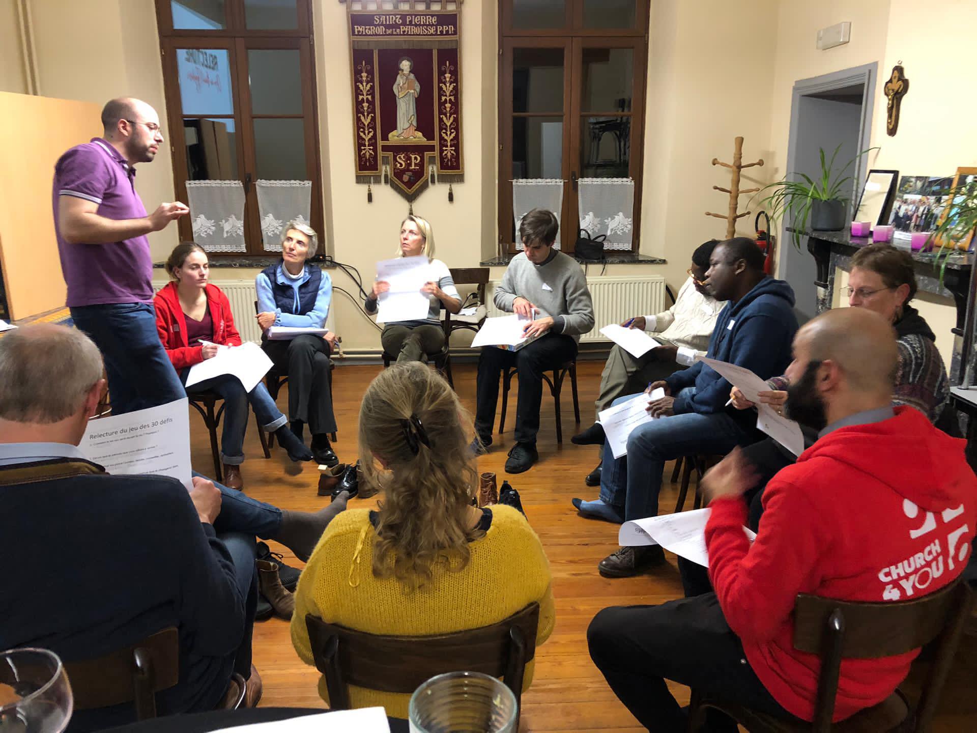 Cette première expérience fut l’occasion pour Luc de nous rappeler qu’il est essentiel de d’abord créer du lien avec les jeunes, de vivre les choses avec eux, à leur rythme et de ne pas être trop pressés de passer aux animations/discussions cathos. Et que, d’un simple jeu « profane » peut naître toute une réflexion spirituelle. Cela a d’ailleurs été la deuxième partie de la soirée : que nous disent ces défis ? Comment avons-nous pu faire Eglise ? Quelle place ai-je pris dans la « communauté » ? Un temps pour faire un lien avec notre foi vécue.