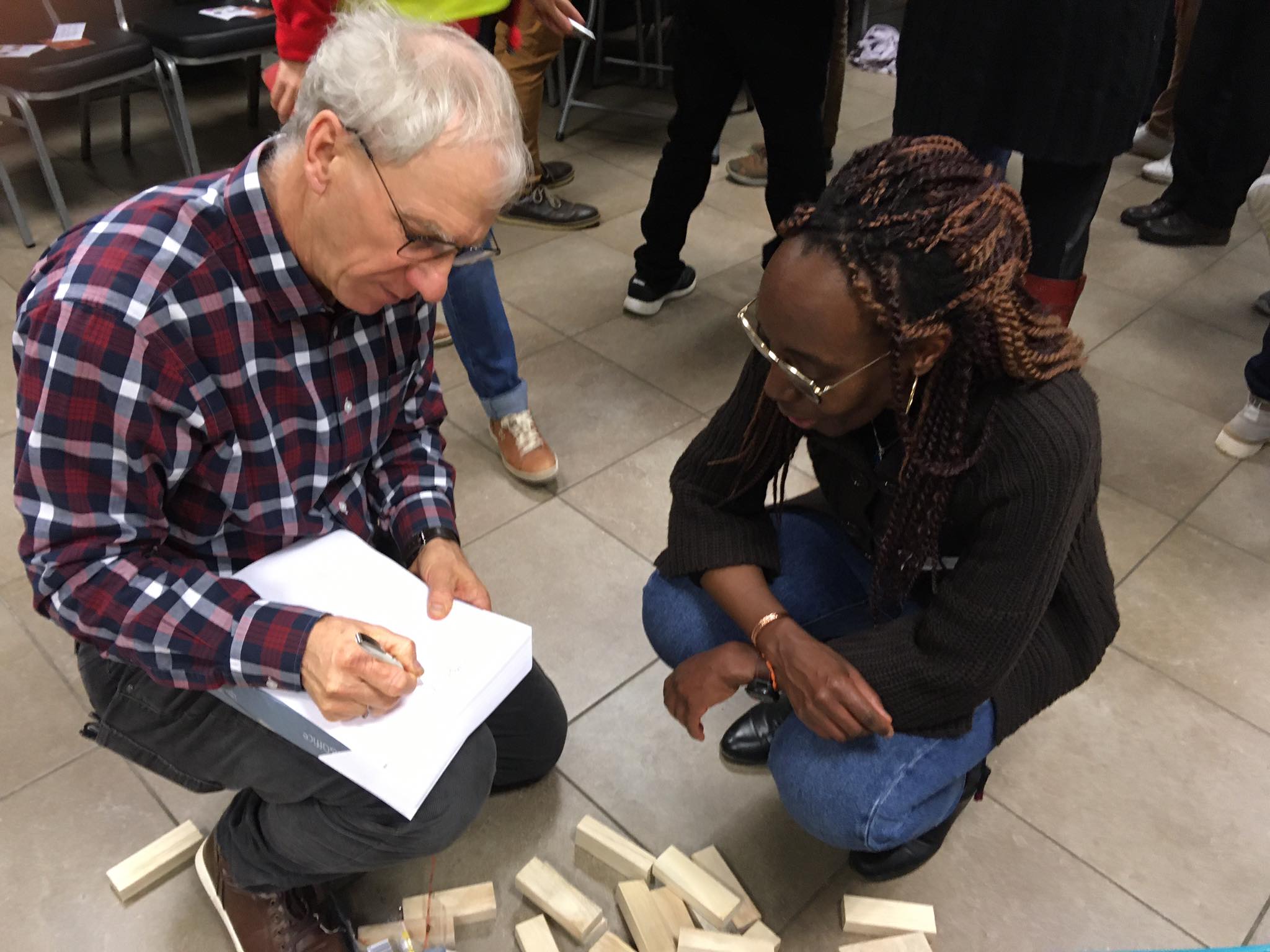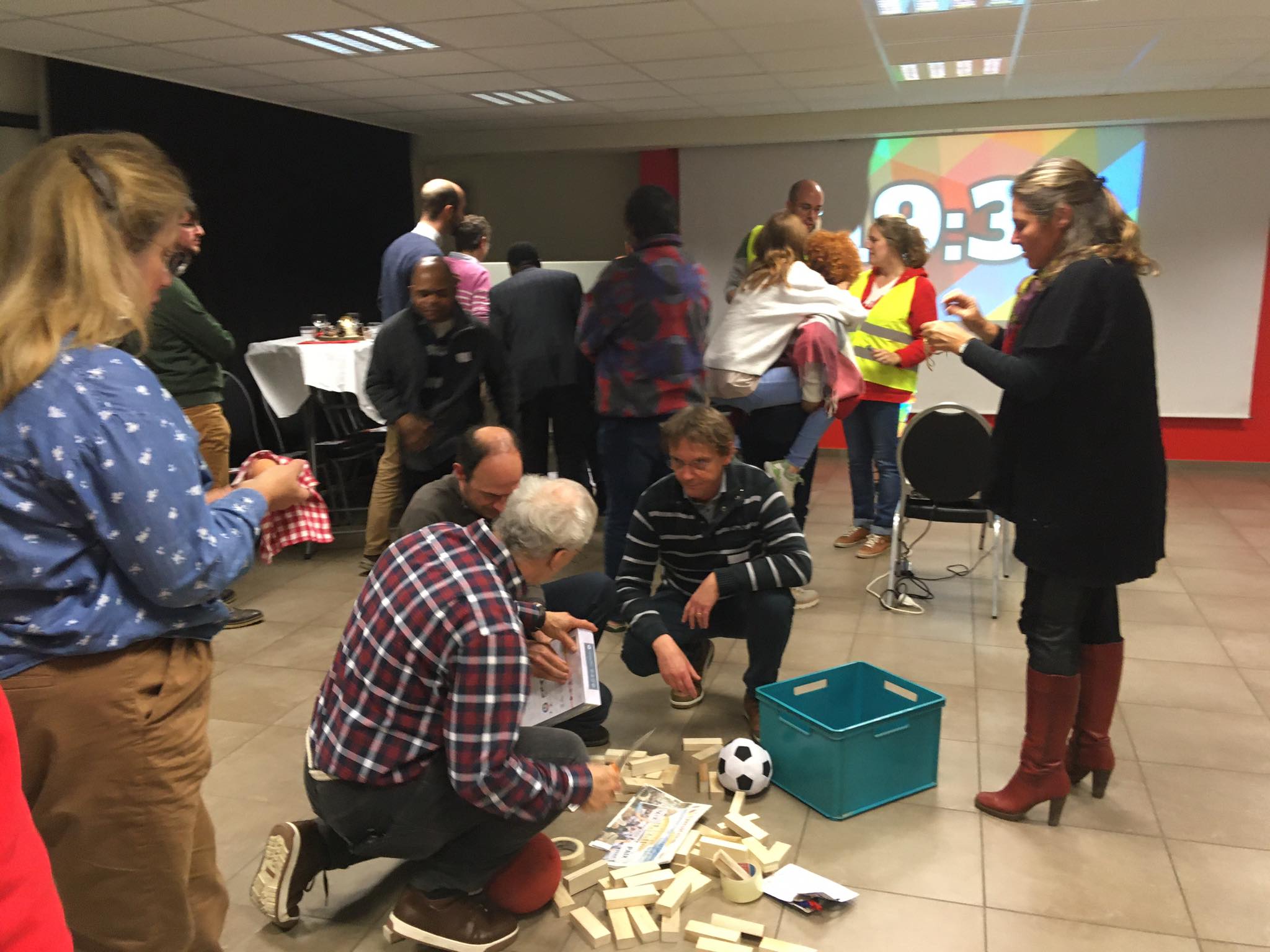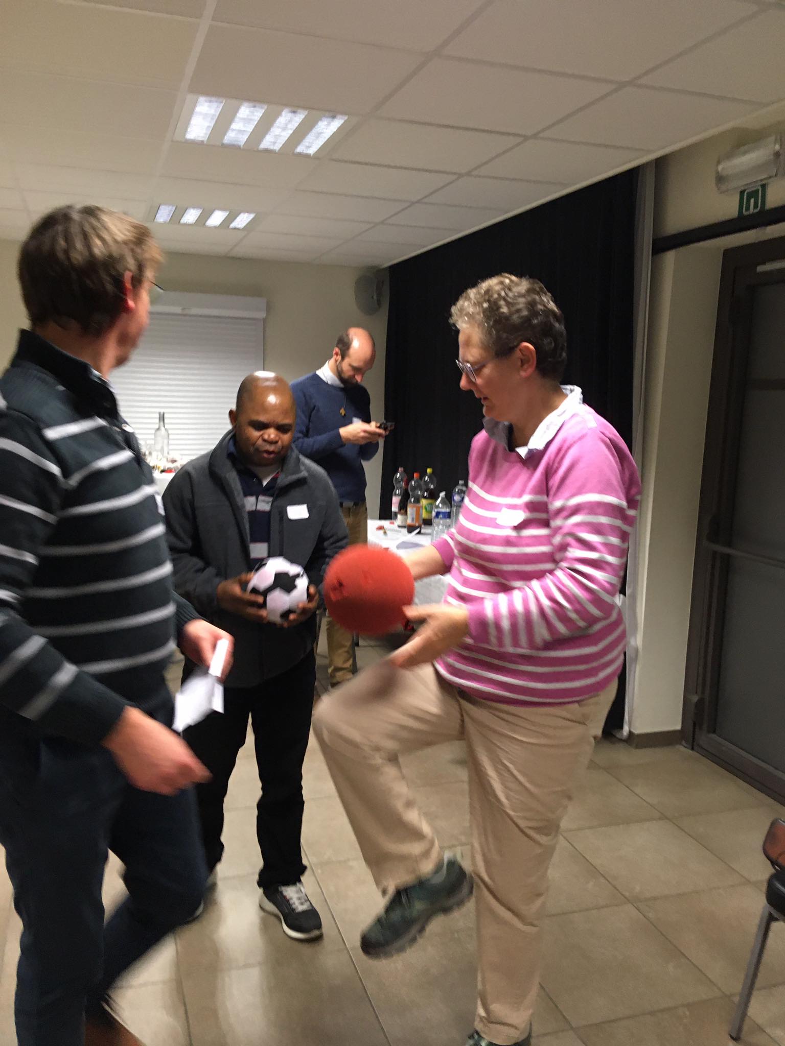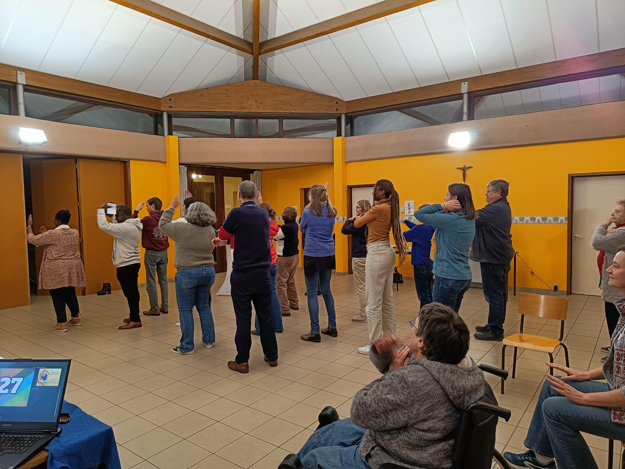 Ensuite, après une petite introduction au sujet par l’équipe de la Pastorale des Jeunes, Luc a proposé une première activité en mettant les participants en situation avec le challenge de relever une série de défis en un temps déterminé. Ça allait dans tous les sens : réciter l’alphabet à l’envers, faire une chaîne de 10 mètres de vêtements, imiter les cris d’animaux, composer un refrain sur les Unités pastorales, etc. Bref, un vrai moment de rigolade, détente et solidarité car on avait besoin des charismes de chacun pour parvenir à relever les défis !