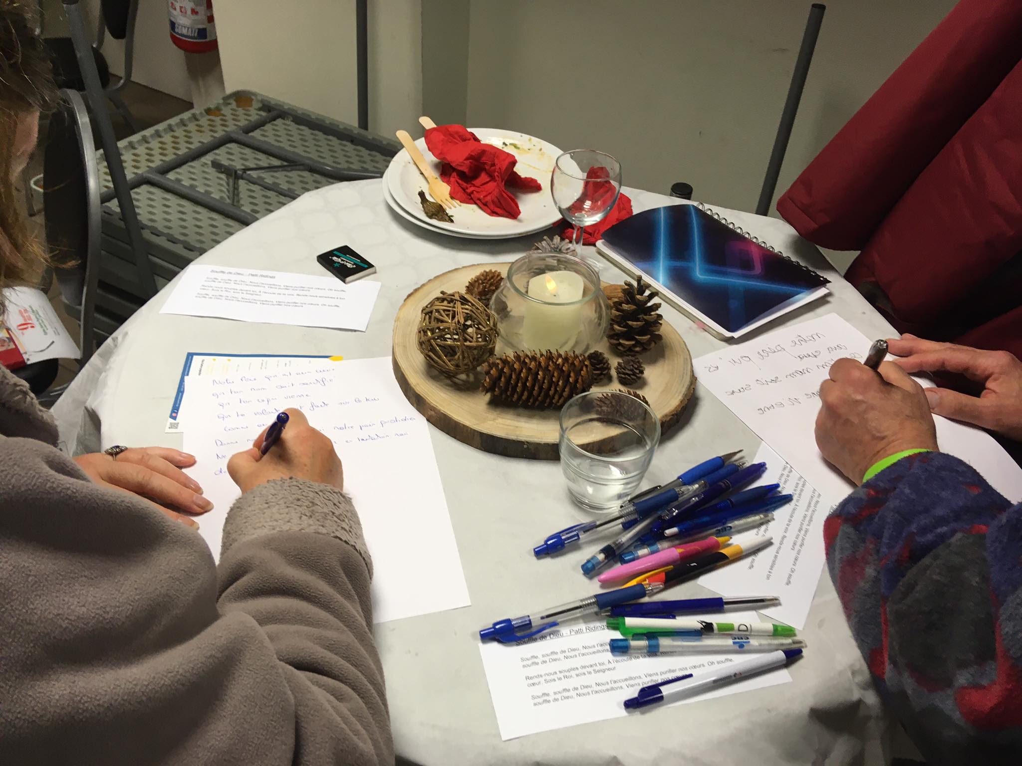 La soirée s’est terminée par un temps de prière collaboratif confié aux mains des participants répartis en trois sous-groupes : un pôle déco, un pôle textes et un pôle musique. Chaque pôle avait donc sa part de responsabilité dans la conception du temps de prière que nous avons ensuite vécu tous ensemble. De quoi rendre grâce ensemble pour les échanges et les conseils reçus !