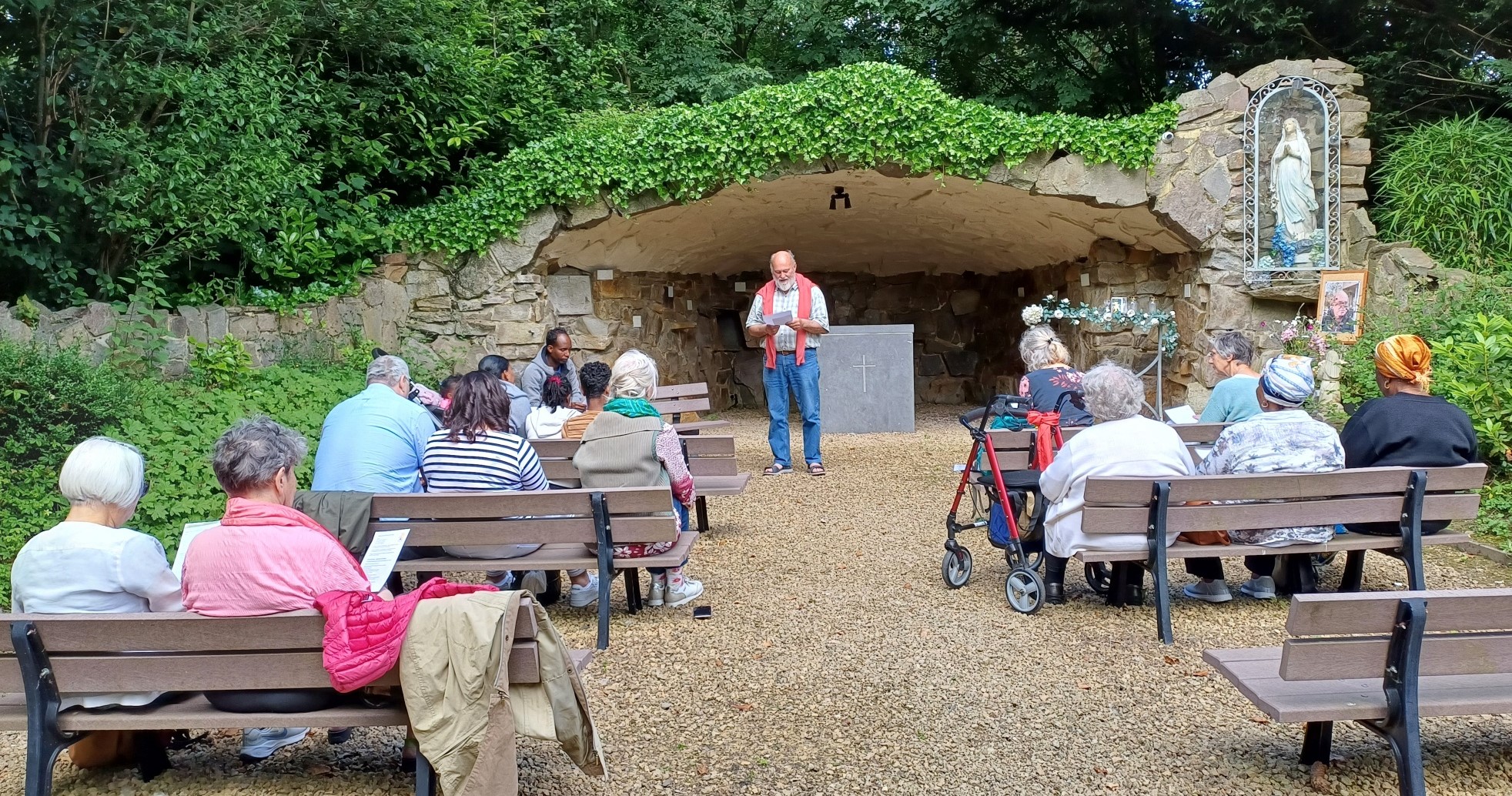 De la Vierge des pauvres à la Grotte de Lourdes de La Hulpe, c’est toujours la Vierge Marie qui accompagne notre groupe de pèlerins de Banneux.